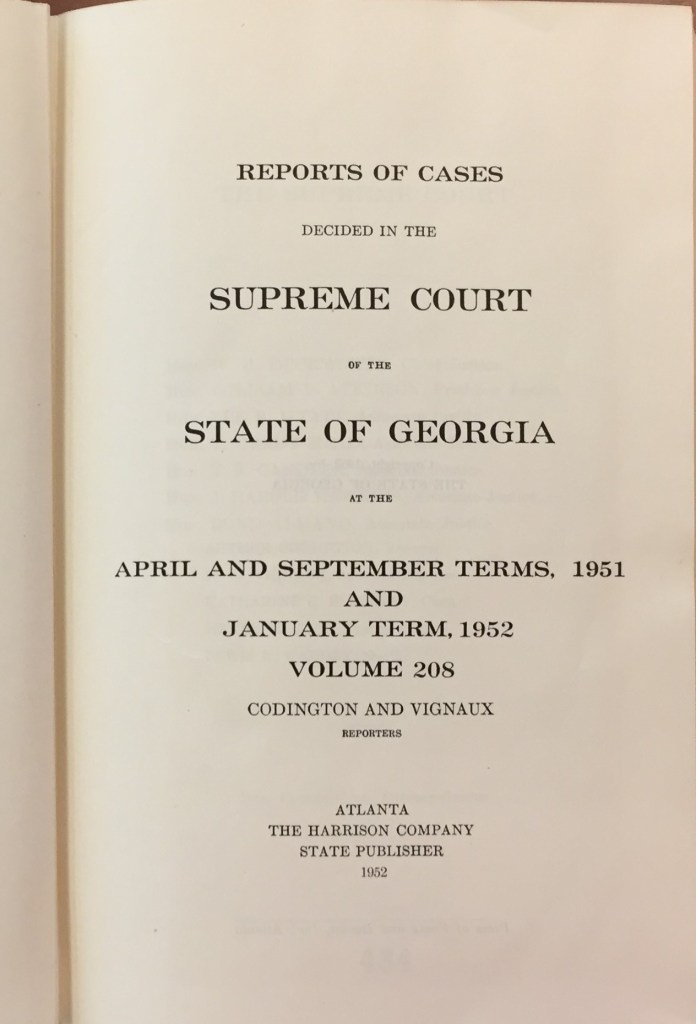 Book Cover for the Reported Cases of the Supreme Court of Georgia (April & Sep 1851 & Jan 1852)